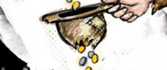Буратино отодрал вторую шишку, и она — бах! — Карабасу Барабасу прямо в темя, как в барабан.